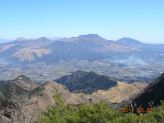 朝8時起床。 外はいい天気のようだ。山へ行こう。 南外輪山の地蔵峠へは、車で1時間もかからない。 地蔵峠から南外輪山を大矢野岳へ向けて歩く。 ここから見える阿蘇五岳は、斜めに引き締まって、とても気に入っている。 山はとても静かで、早春のそよ風に、枯れ薄のかすかな音が聞こえるばかりである。 阿蘇の大観を眺め、久木野の物産館でふきのとうとせりを買って帰る。 今晩は、ふきのとうの天ぷらで春の酒を楽しもう。 |
