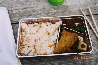 北岳山荘の弁当 北岳山荘に頼まれて熊ノ平小屋へ焼酎一升 運んだ。お礼にビールをいただいた。 |