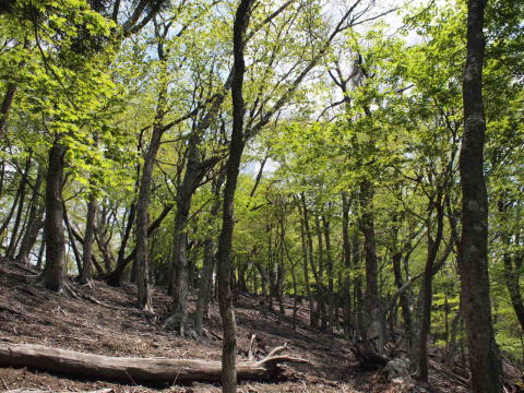 三尾に至る登山道の雰囲気 三尾付近で昼食とする。 |