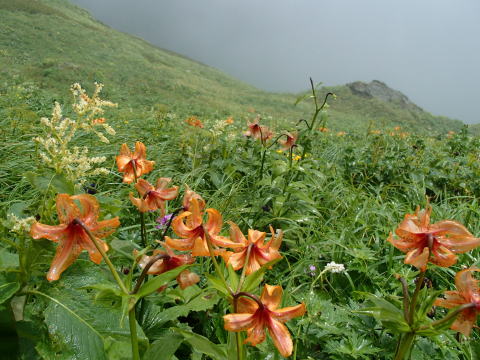 白馬岳のお花畑。クルマユリなどなど さすがに花の名山。お花畑が続く。 |