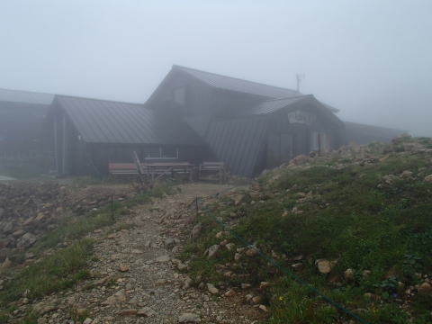 【二日目】 早朝5時前に出発 相変わらずの曇天だが、明るいところもあり、雲は薄そうだ。晴れてくるかもしれない。 谷間のお花畑で朝食とする。フリーズドライのフカヒレ雑炊に、昨夜の残りの御飯を入れて混ぜる。美味い。 再び歩き始めると、とうとう雨が降ってきた。 高度を上げるにつれて、雨は激しくなり、三国境からは横殴りの暴風雨となった。雨が横から背中とリュックの間に入ってくる。 唐松の小屋まで足を延ばす企みは消えてなくなった。 ゆっくり歩こう、雨の白馬三山。 |
