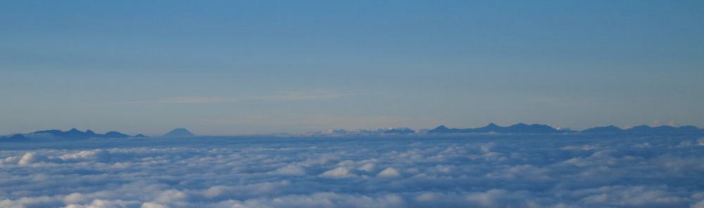 | 蓼科 横 赤 阿弥陀 権現 編笠 富士 鋸 甲斐駒 北岳 間ノ岳(仙丈) 塩見 悪沢 赤石 安曇野の雲海上に浮かぶ山々 |