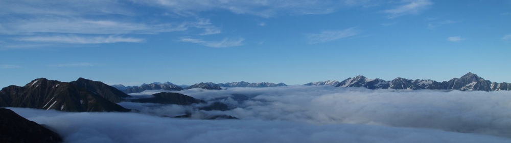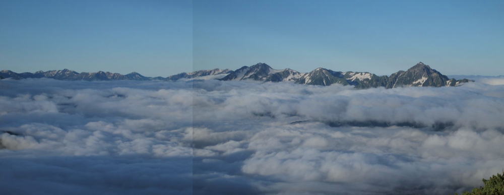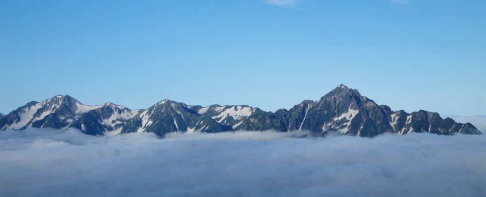 | 五竜 鹿島槍 大天井 前穂 奥穂 槍 乗鞍 針木 鷲羽 水晶 赤牛 黒部五郎 薬師 立山 真砂 別山 剣 蓮華 北アルプスの主だったメンバーが顔を揃えた。 |