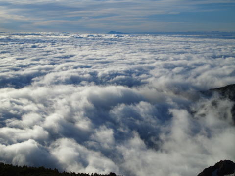 東方に目を移せば、安曇野の雲海に、名山が浮かぶ。 |