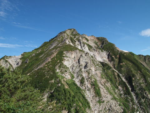 白馬鑓ヶ岳 昨日は真っ白だったが、今日は間近に巨体を現した。 |