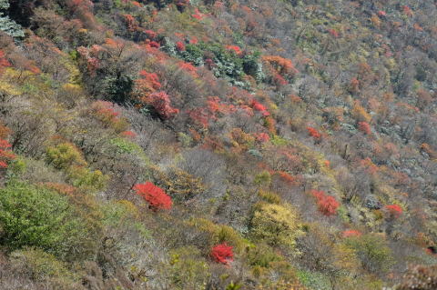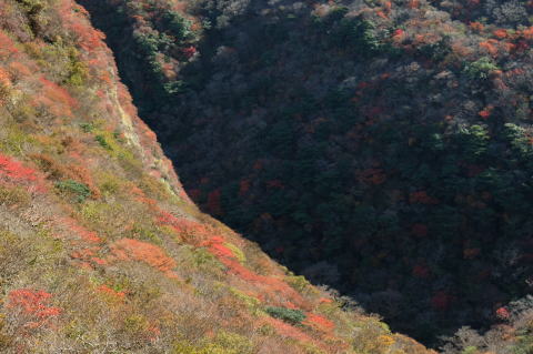 国見から紅葉茶屋へ下る途中の紅葉。 |