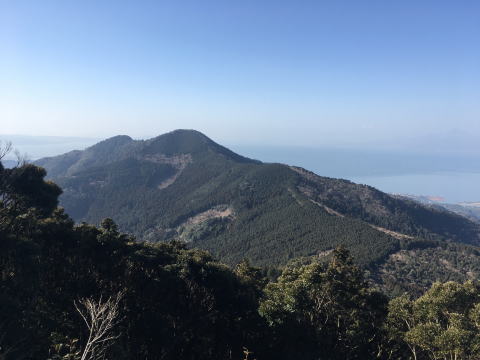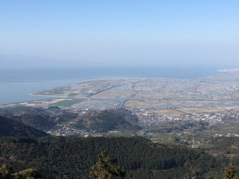 | 二ノ岳山頂に着いた。 有明海の向こうに雲仙が見える。 |