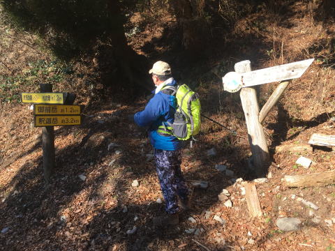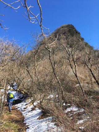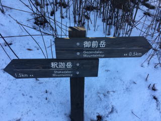 2022.1.8 令和4年の登り始めは、御前岳釈迦ヶ岳。 Mちゃんの計画に参加し、 Nしゃんと3人の山行となった。 林道は標高が上がると アイスバーンになっていた。 御前と釈迦の分岐まで引返し、駐車。 そこから御前と釈迦を周回する。 |