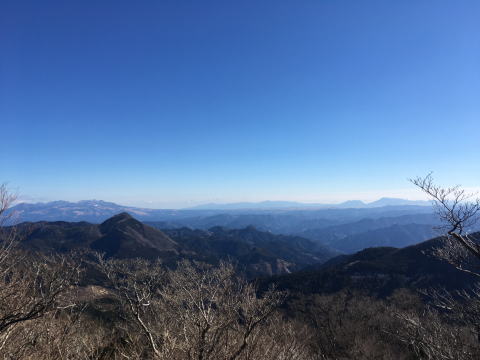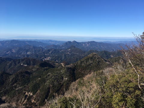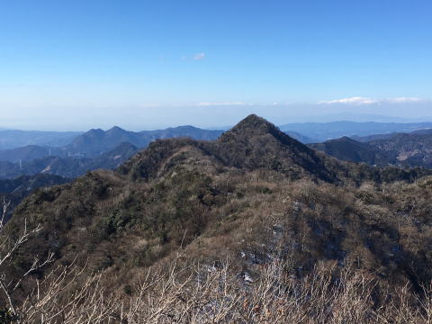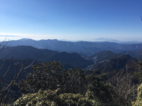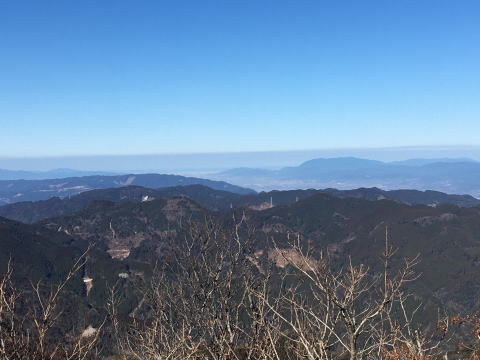 | 西方、多良岳、背振山系方面 手前の目立つ双耳峰は何だろう? しばらく行くと山頂に着いた。 |