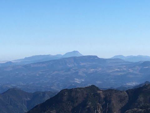 | 九重、祖母、阿蘇が並ぶ大観 九州のビッグスリー 国土交通省のレーダー観測局に 立ち寄り、 山ガールに別れを告げ下山。 |