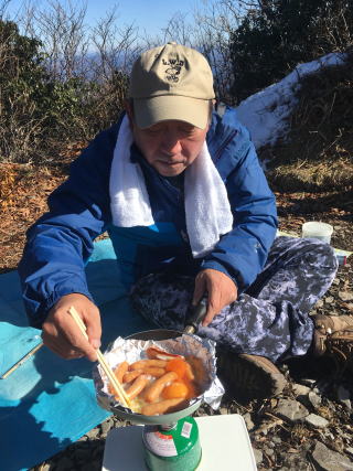 | 北方、筑後川流域、宝満山方面 さあ、ハッピーランチタイム 山のアイアンシェフが登場。 |