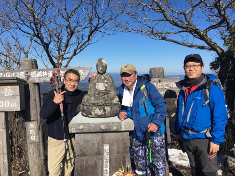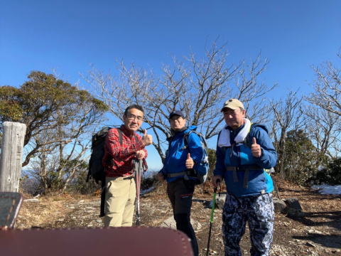 | 山頂でのスペシャルショット 【写真提供Nしゃん】 晴れ男三人衆 |