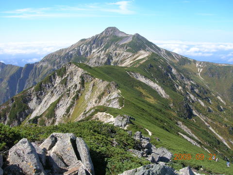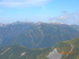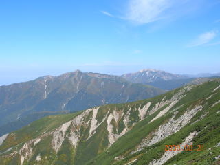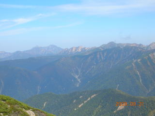 山頂から 双六、三俣蓮華の向こうに 右から 野口五郎、鷲羽、水晶 |